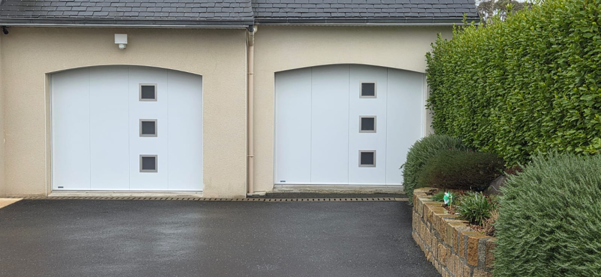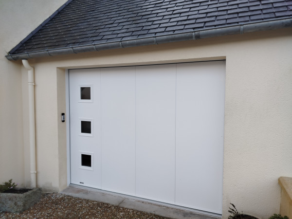 Porte de garage sectionnelle latérale avec une ouverture coulissante permettant un accès piéton bien pratique !